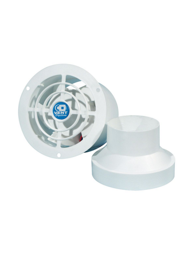 Mit einem Reduzierstück mit 60 cm Durchmesser, das eine seitliche oder Deckenevakuierung ermöglicht.