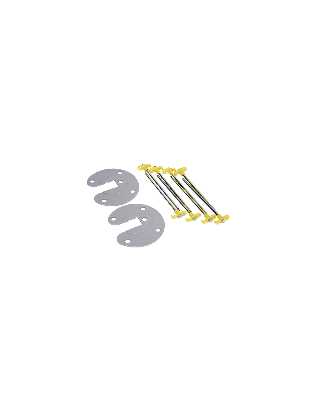 Das Kit enthält zwei 8-polige Befestigungsplatten mit gelber Oberfläche für Sichtbarkeit bei Nacht.