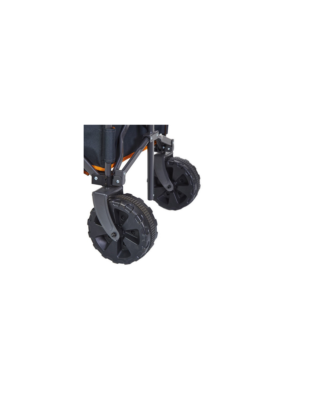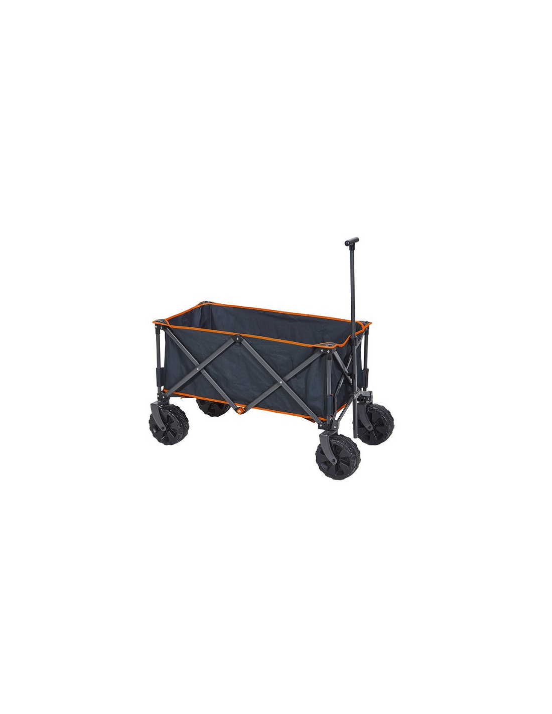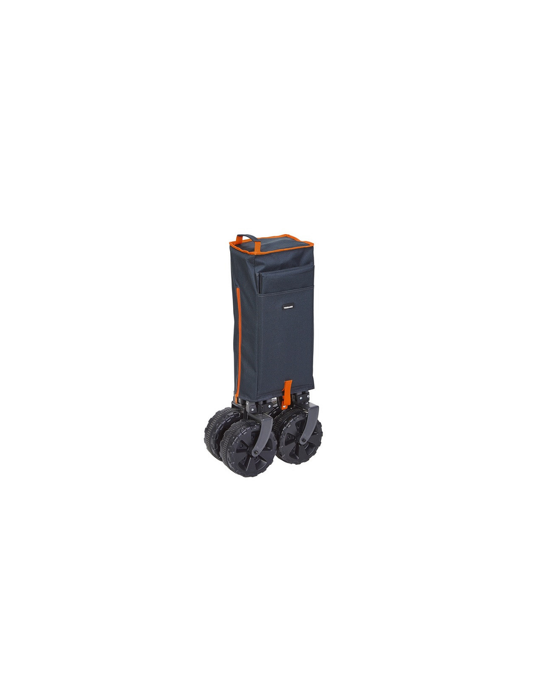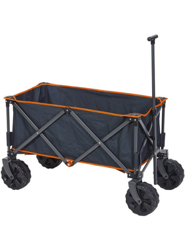 Der Wagen ist faltbar und bietet ein großes Fassungsvermögen von 200 Litern.
