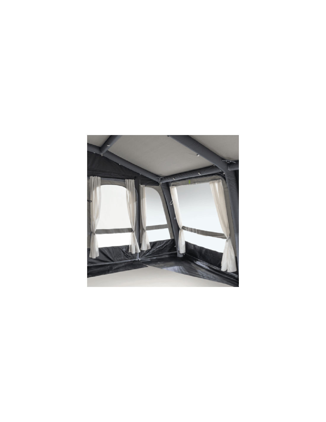 Dank seines patentierten Multi-Height-Systems kann das aufblasbare statische Vorzelt sowohl für Wohnwagen als auch für Wohnmobile verwendet werden, die über eine mehrfach höhenverstellbare Führungsbefestigung verfügen. Öffnen Sie einfach die verstärkten Seitenteile der Markise, spannen Sie die Markise nach unten, um den besten Sitz zu erzielen, und schließen Sie dann die inneren Reißverschlüsse, um überschüssiges Material zu verbergen.