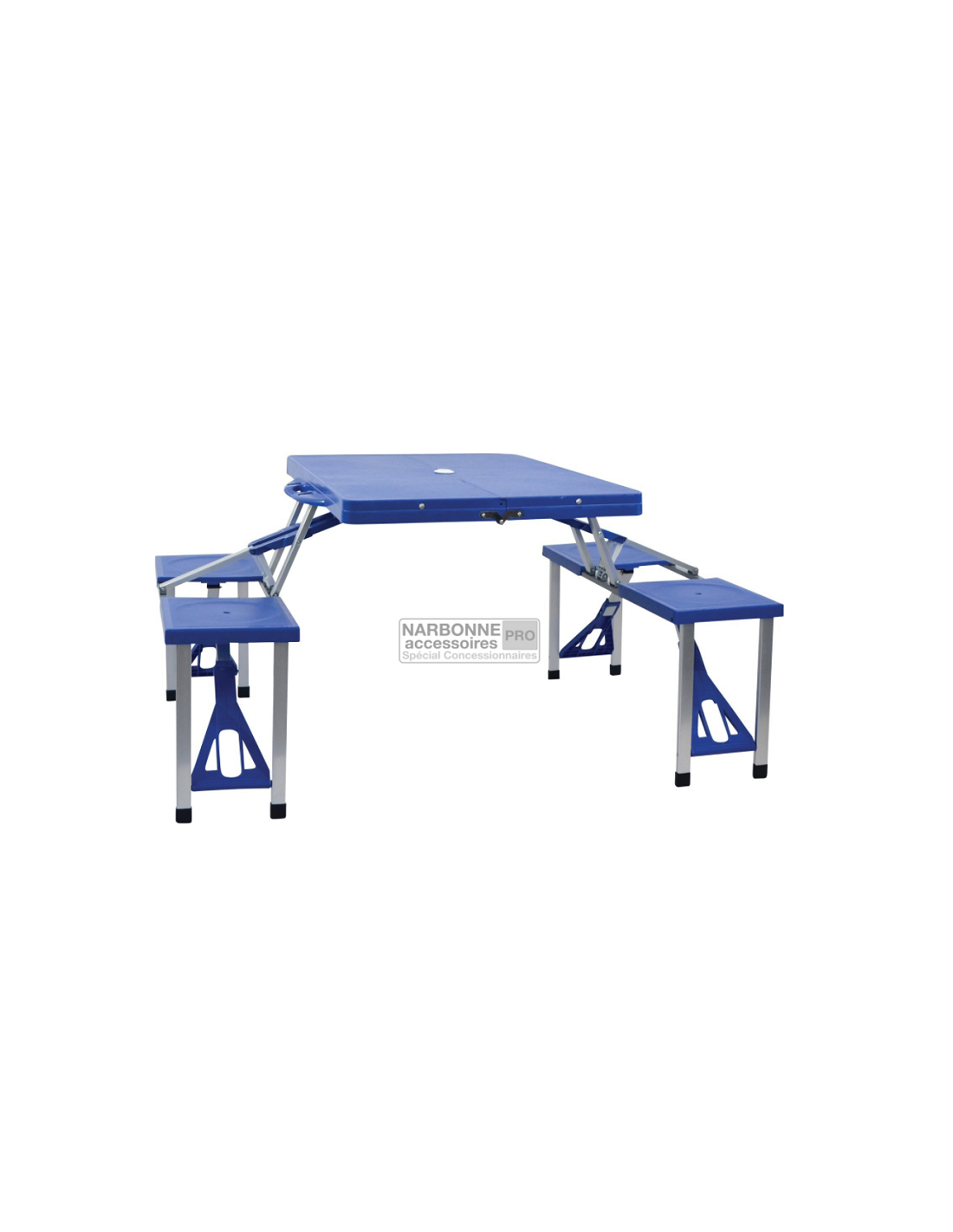 Praktisch und leicht, dieser zusammenklappbare Picknicktisch mit 4 Sitzplätzen kann dank seines zusammengeklappten Kofferformats überall hin mitgenommen werden.
