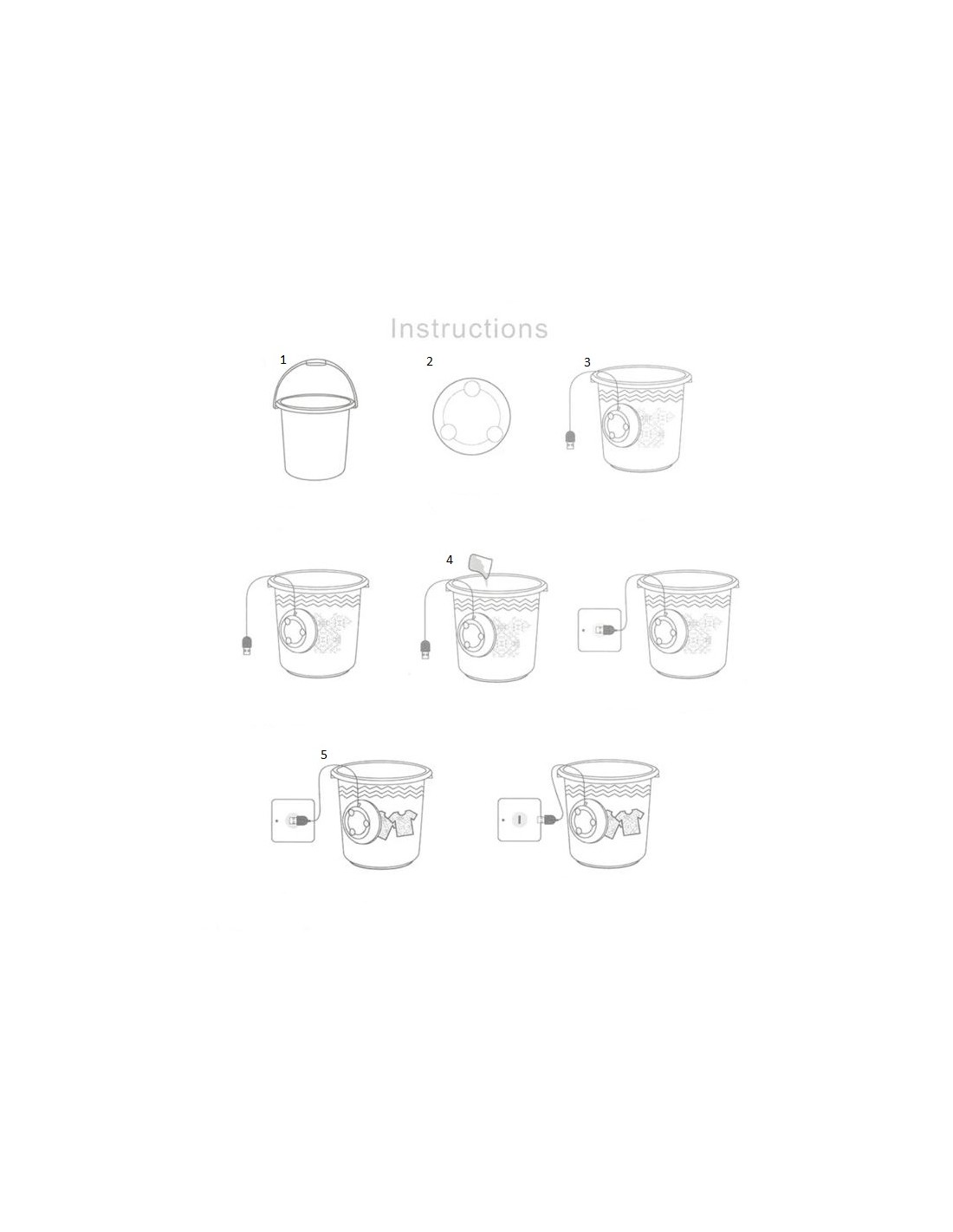 4. Einfach zu bedienen: Legen Sie Ihre Kleidung in den Eimer, fügen Sie die richtige Menge Waschmittel hinzu und schließen Sie das Produkt an, um Ihre Kleidung einfach zu reinigen.