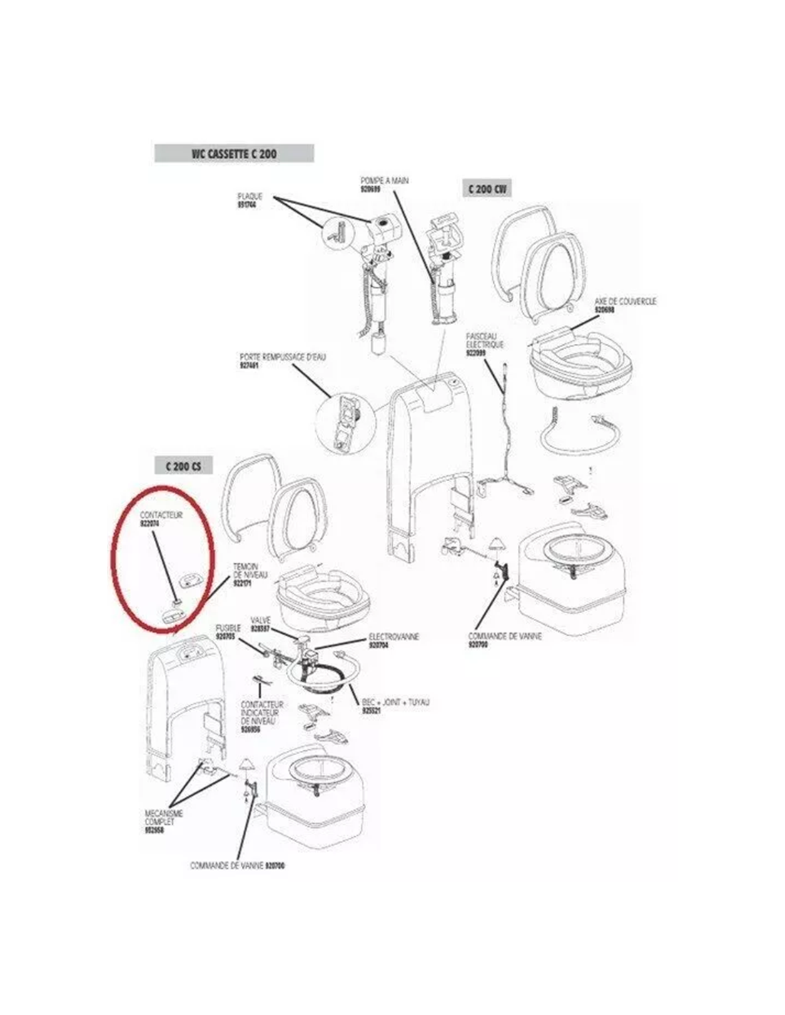 Pumpenschalter zum Herunterladen der Kassettentoiletten ausgestattet Thetford SC200