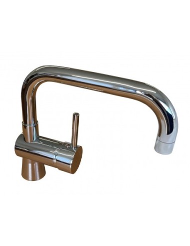 Verchromter Spülenmischer mit Drehrohr, geliefert mit zwei Edelstahlversorgungsschläuchen mit integrierten Gelenken und einem Befestigungssatz. Keramikpatrone Ø 40 mm.