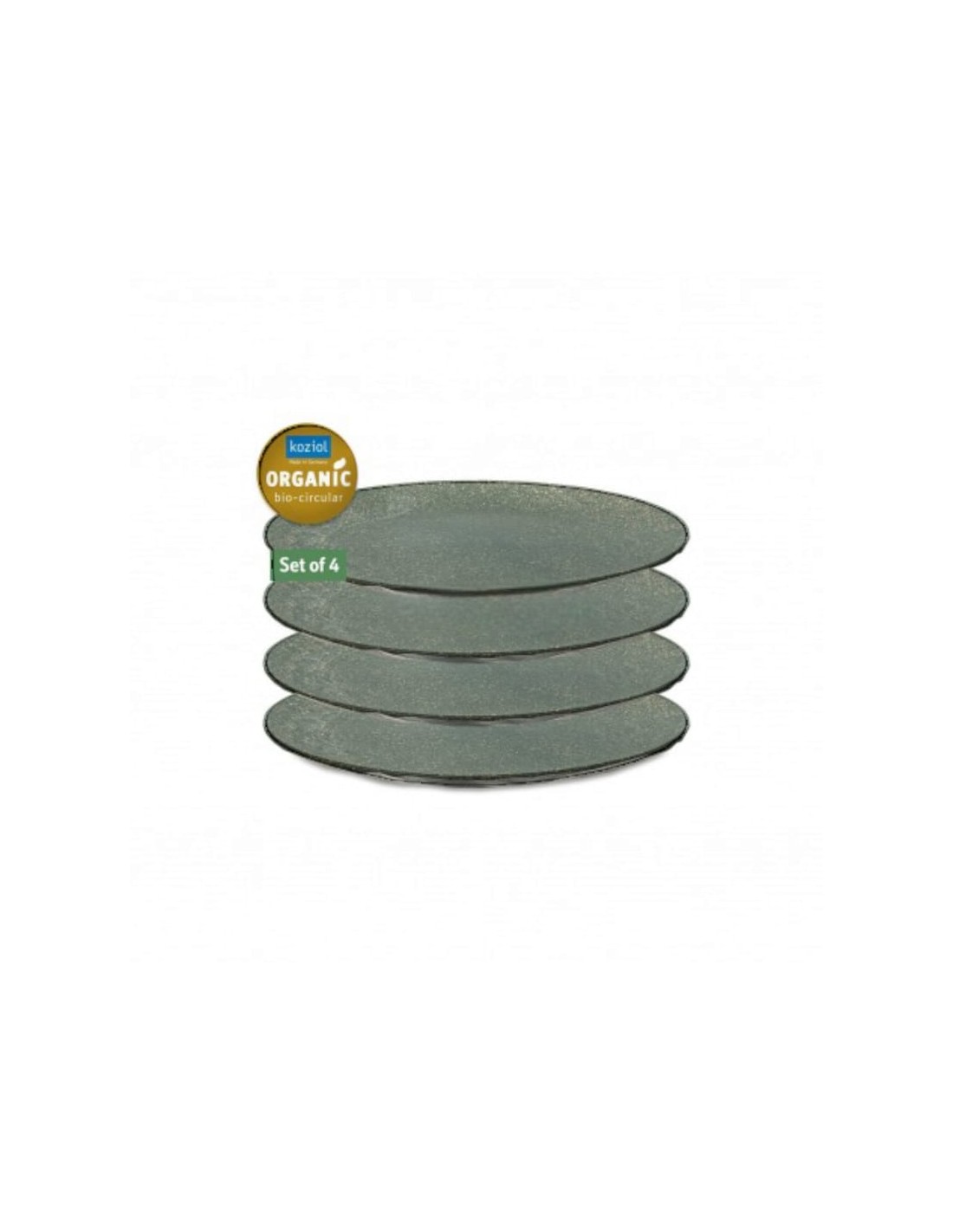 4er-Set Essteller aus einem innovativen, 100% natürlichen Material: ausschließlich aus Thermoplasten und Holzfasern hergestellt. Die Thermoplaste werden ausschließlich aus vollständig recyceltem Sonnenblumen- und Rapsöl aus Industrie und Gastronomie hergestellt, und das Holz stammt aus europäischen und FSC®-zertifizierten Wäldern.