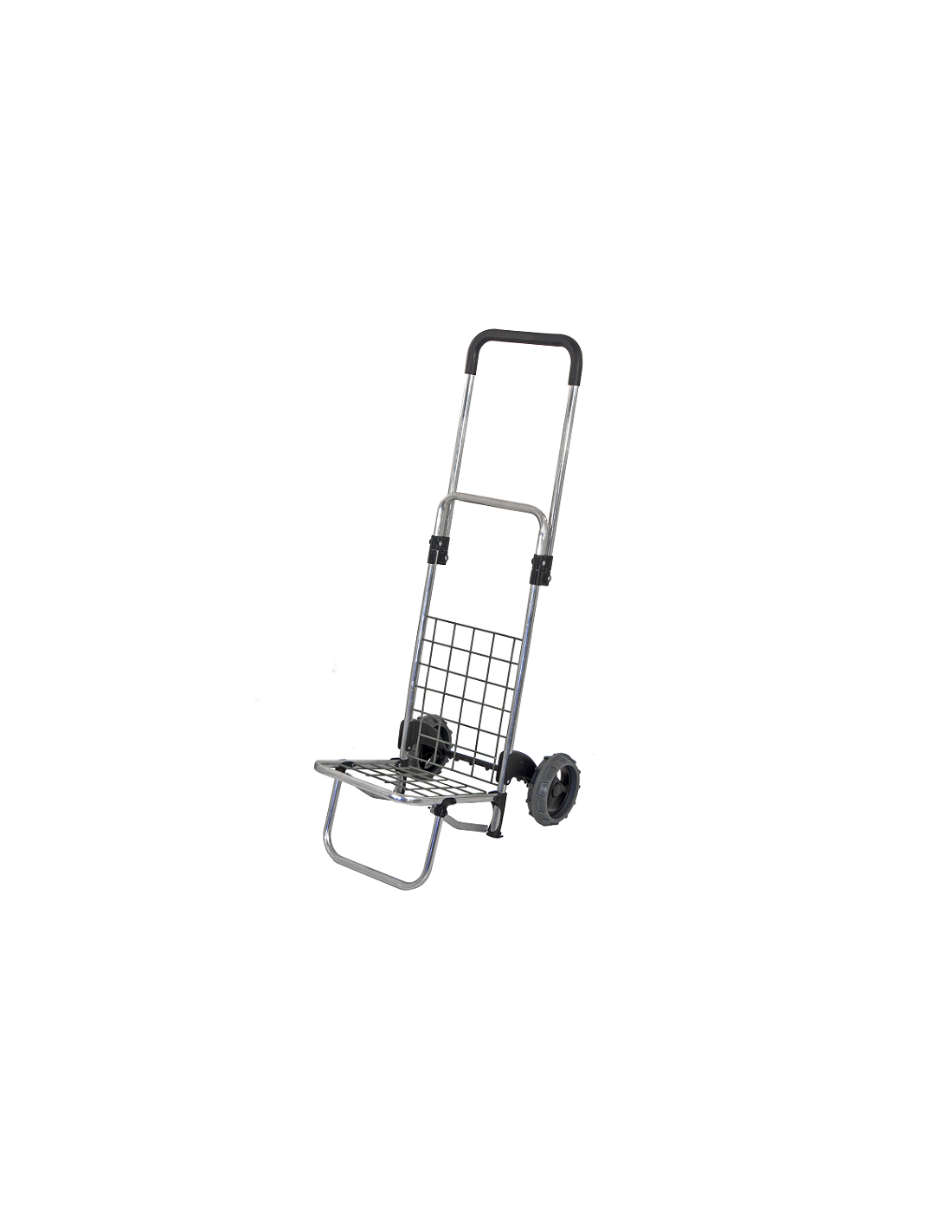 Kompakter, vollständig zusammenklappbarer Trolley, der kaum Platz einnimmt.