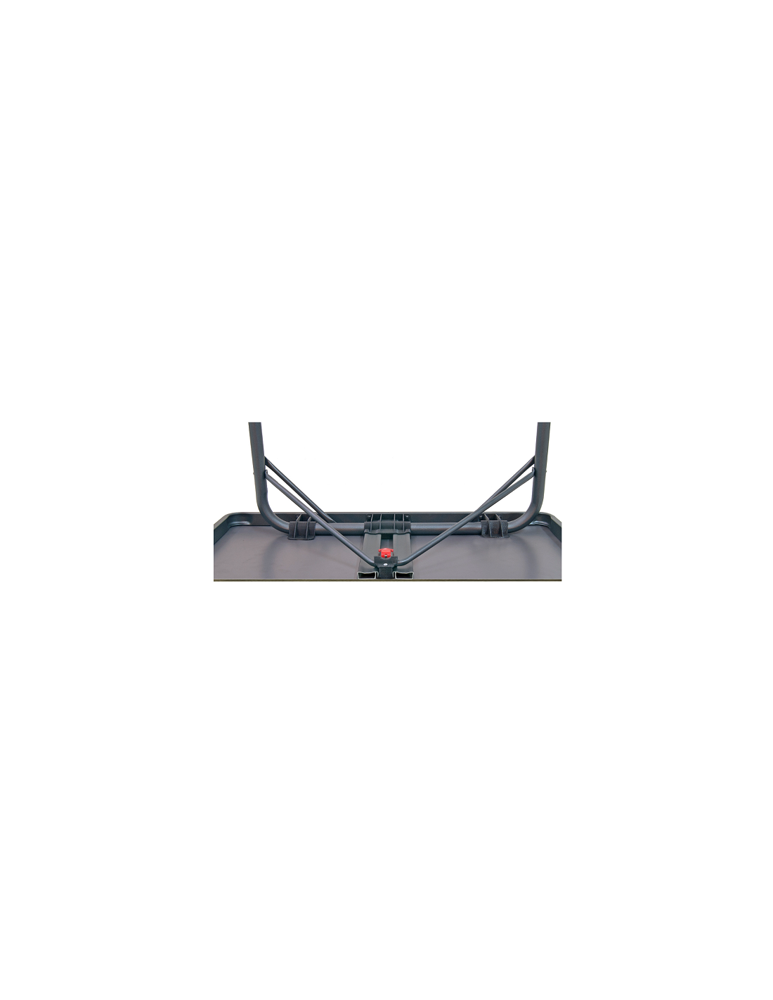 Tisch mit hellgrafitfarbener Platte, die hohen Temperaturen und Feuchtigkeit standhält.