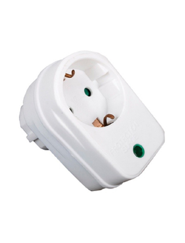 Einfacher Überspannungsschutzstecker mit einer Steckdose mit Kindersicherung. Eingangsspannung: 220 - 250 V/AC 50 Hz max. Ausgang: 16A