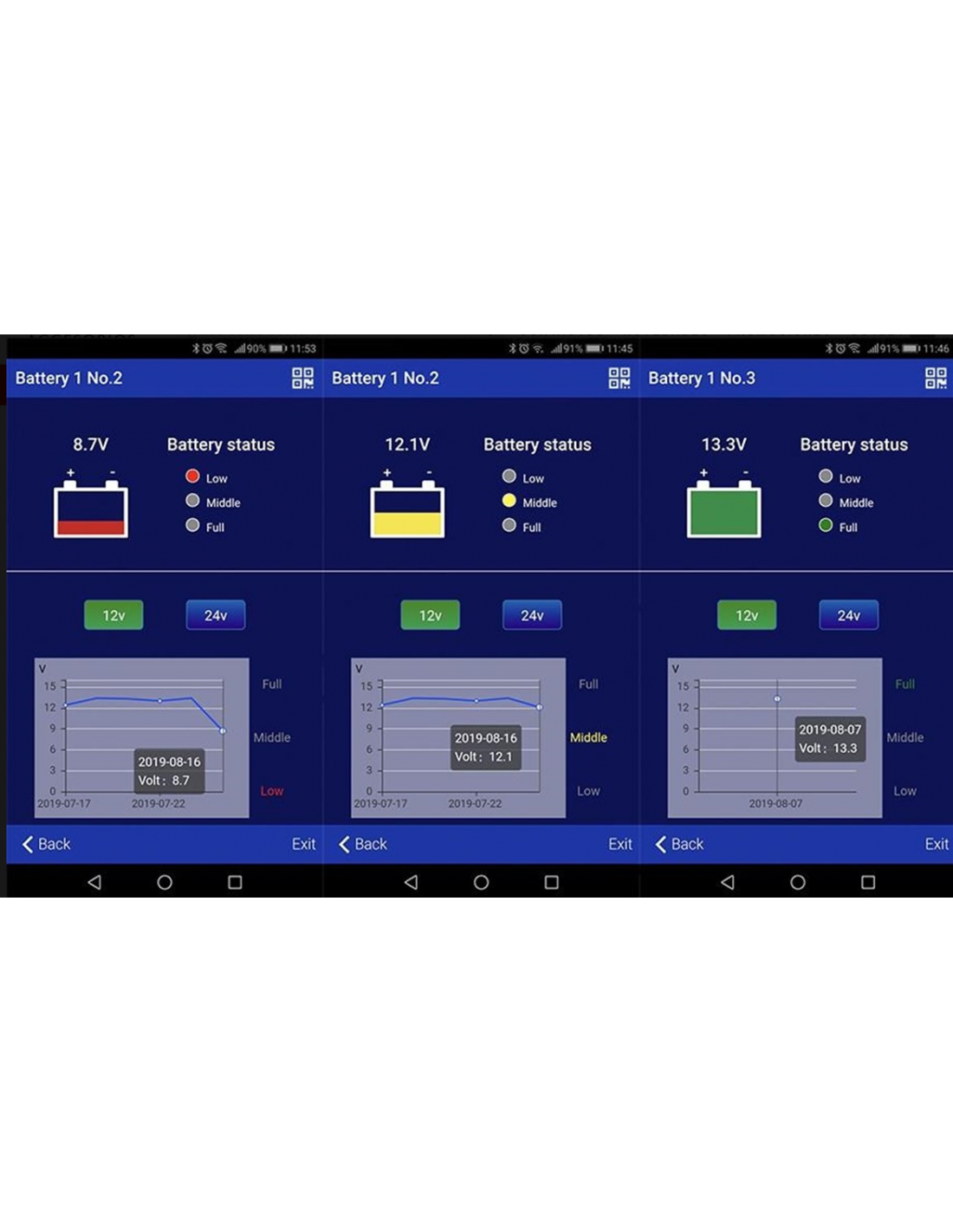 Dank der Bluetooth-Verbindung können Sie in der dedizierten Anwendung sofort die Batteriespannung erkennen und einen Verlauf anzeigen.