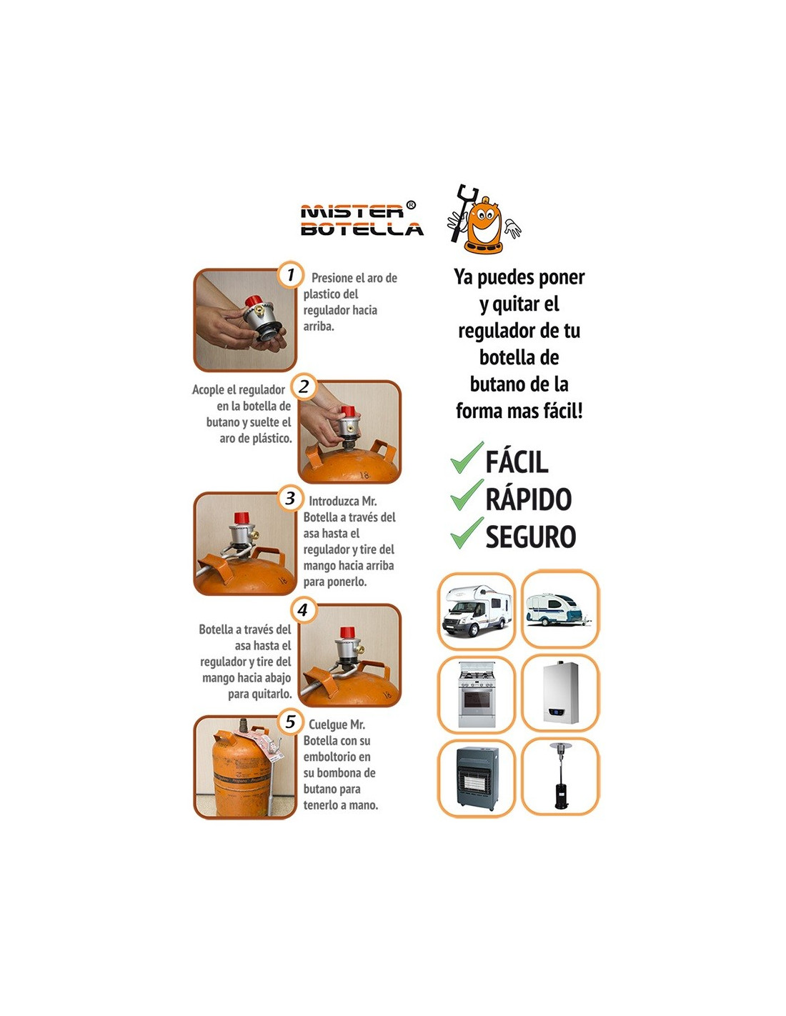 5) Hängen Sie Mr. Bottle mit seiner Flasche an Ihre Butanflasche, um sie griffbereit zu haben