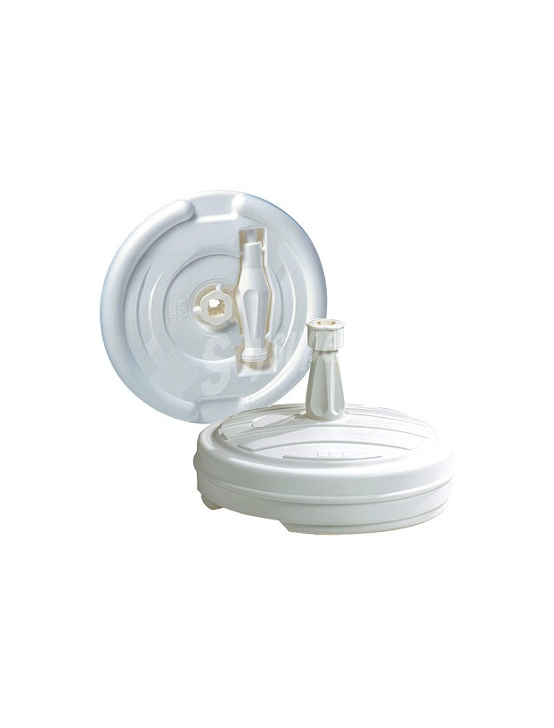 Es ist ein Tank, der beim Befüllen mit Wasser zu einer schweren Basis wird, auf der der Schirm fest bleibt.