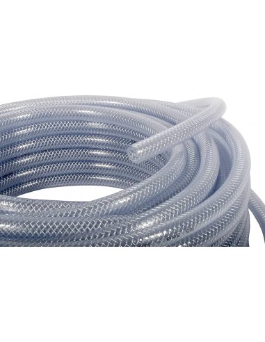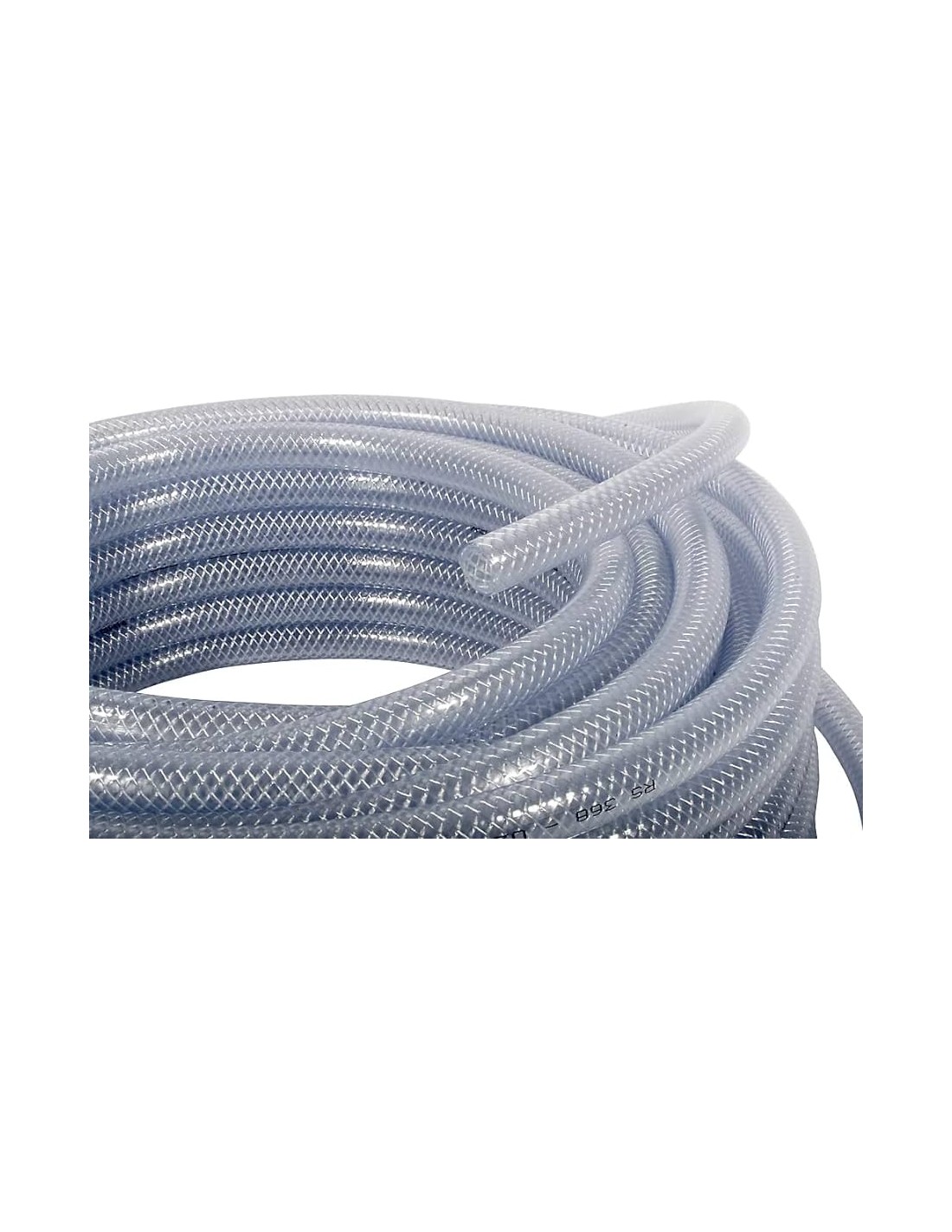 Der Verstärkte Kristallschlauch besteht aus zwei transparenten PVC-Schichten und einer dritten Schicht aus weißem hochbeständigem Polyesterfaden.