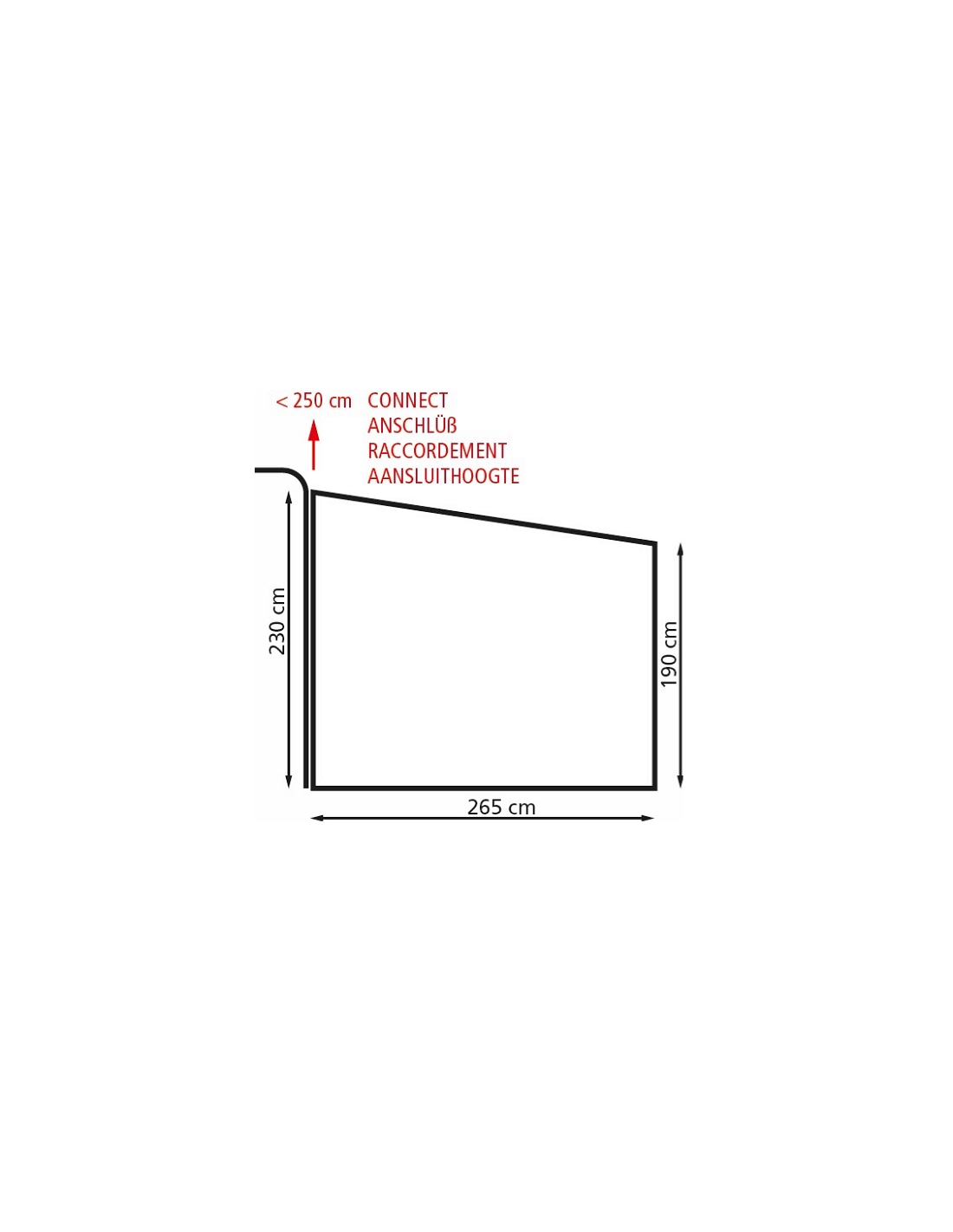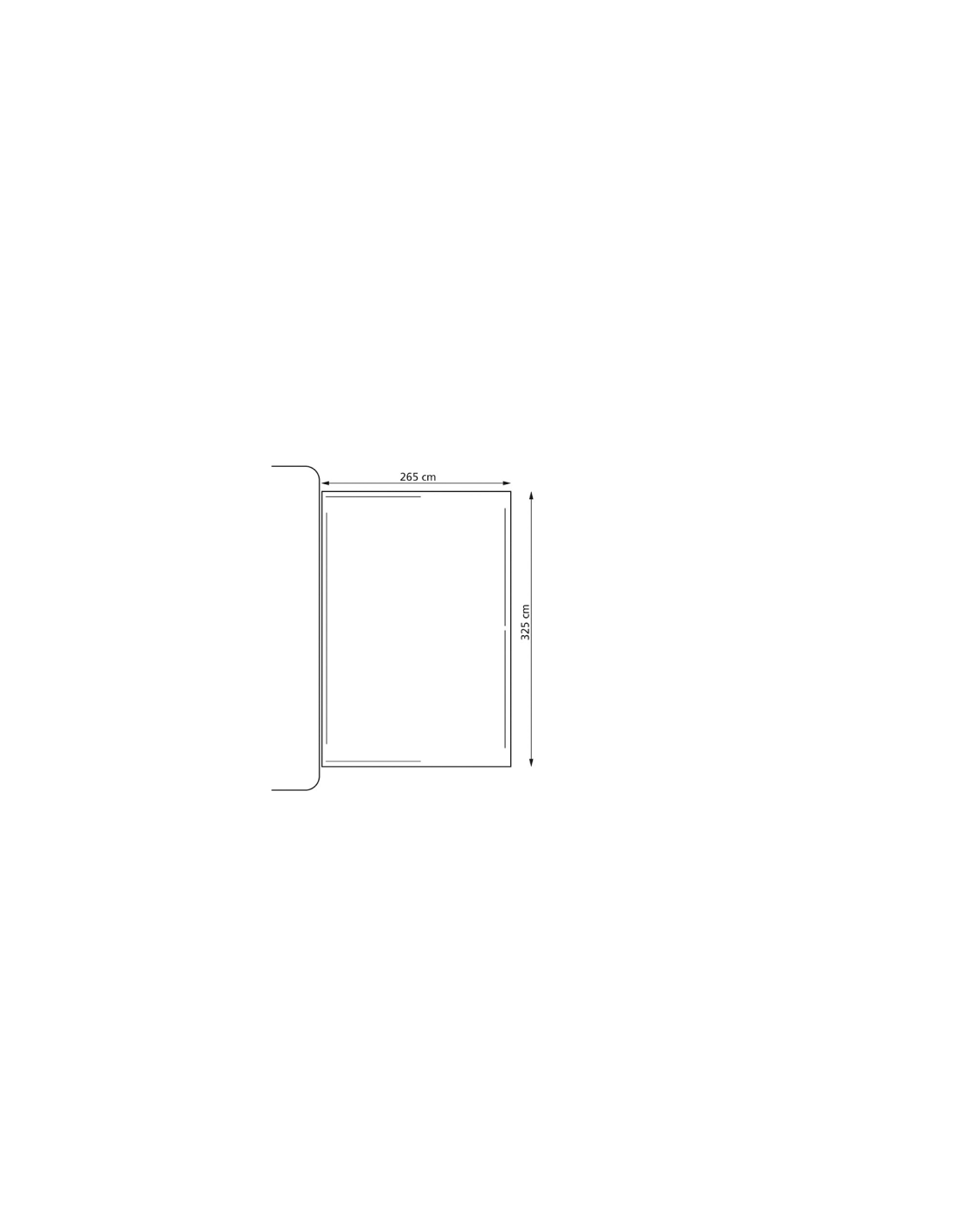 Maße: 265 Tiefe × 325 Breite × 230 Höhe cm.