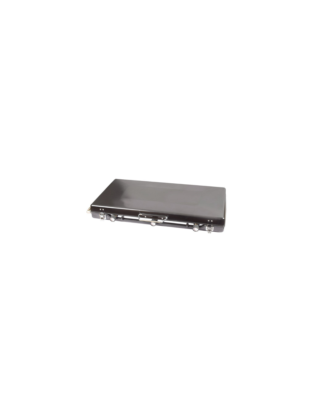 Klappbarer Kofferkocher mit zwei Flammen und Grill. Frisch