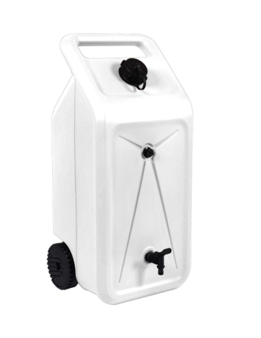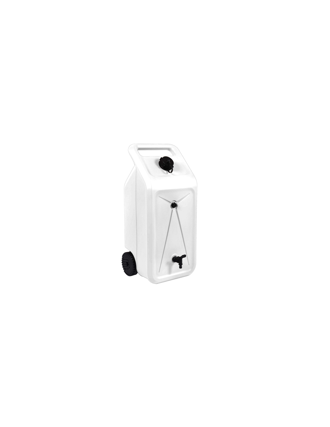 Großes Fassungsvermögen des Jerrican-Tanks, der mit seinen großen Rädern leicht zu transportieren ist.