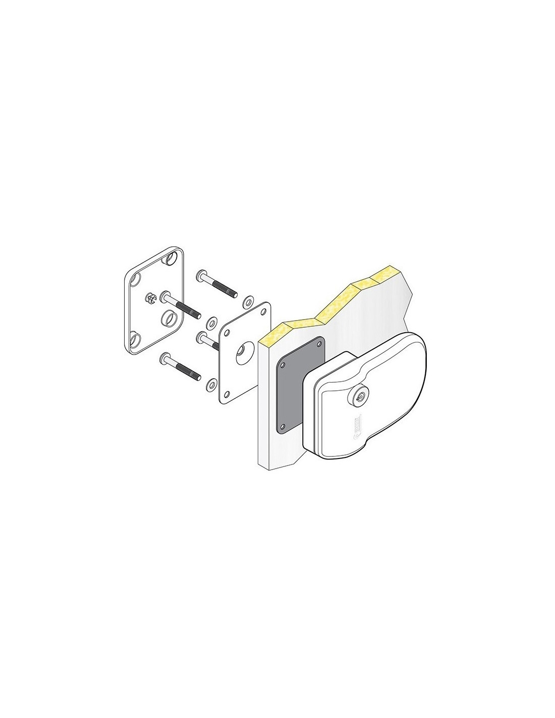 Wandbefestigung mit Durchgangsschrauben und interner Gegenplatte.