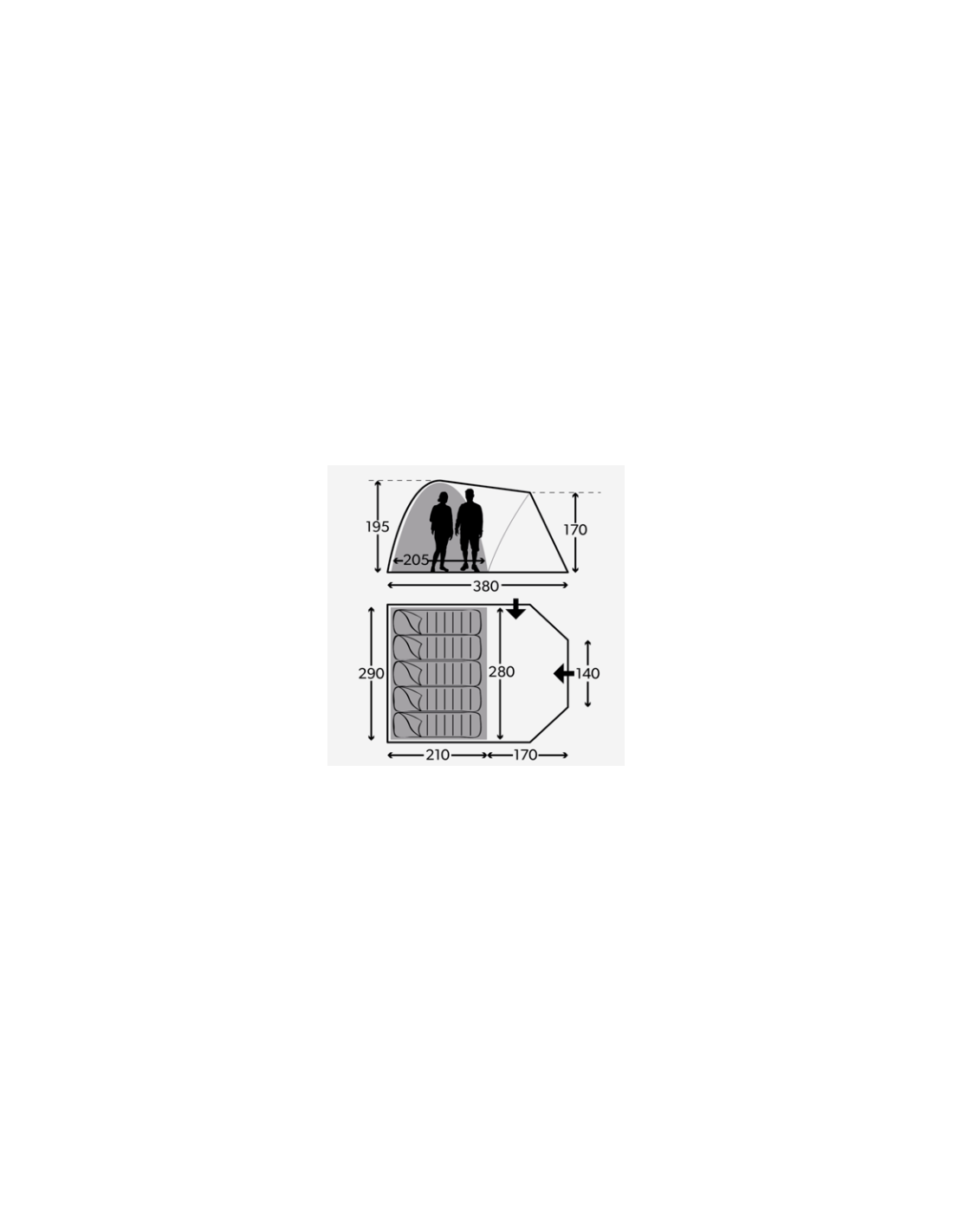 Abmessungen: 380 x 170 x 290 cm