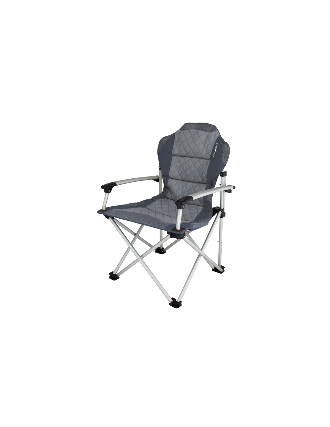 Klappbarer Campingstuhl mit gepolsterter Sitzfläche und Rückenlehne.