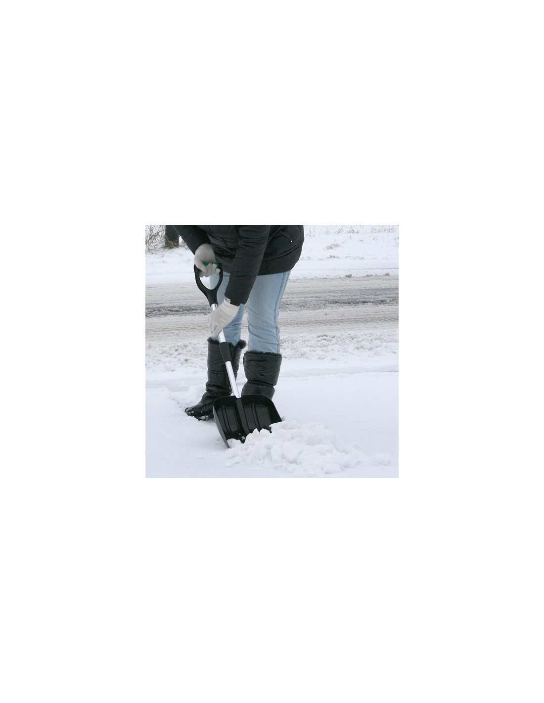 Einfach zu verstauen, kann diese Schneeschaufel bei Nichtgebrauch als Notfall im Auto verstaut oder platzsparend aufgehängt werden.