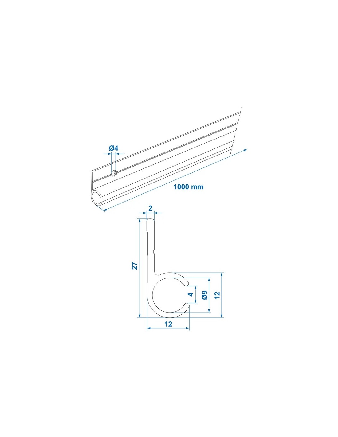 Aluminum rail for shop 90°, 100 x 2.7 cm