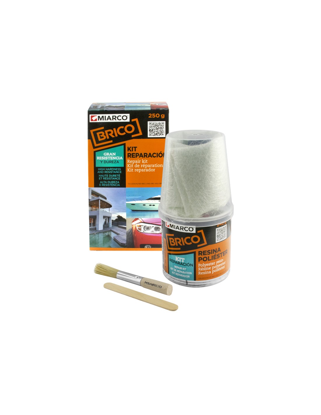 Unsaturated polyester adhesive mask for repair of car bodywork reinforced with fiberglass.