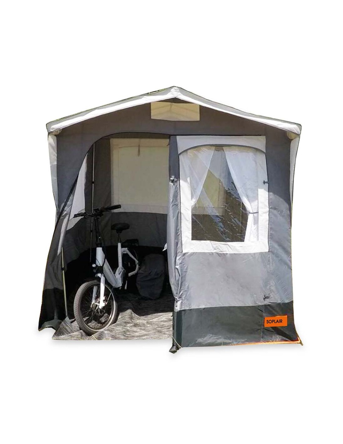 Both sides and the rear are equipped with large windows with mosquito nets and shutters.