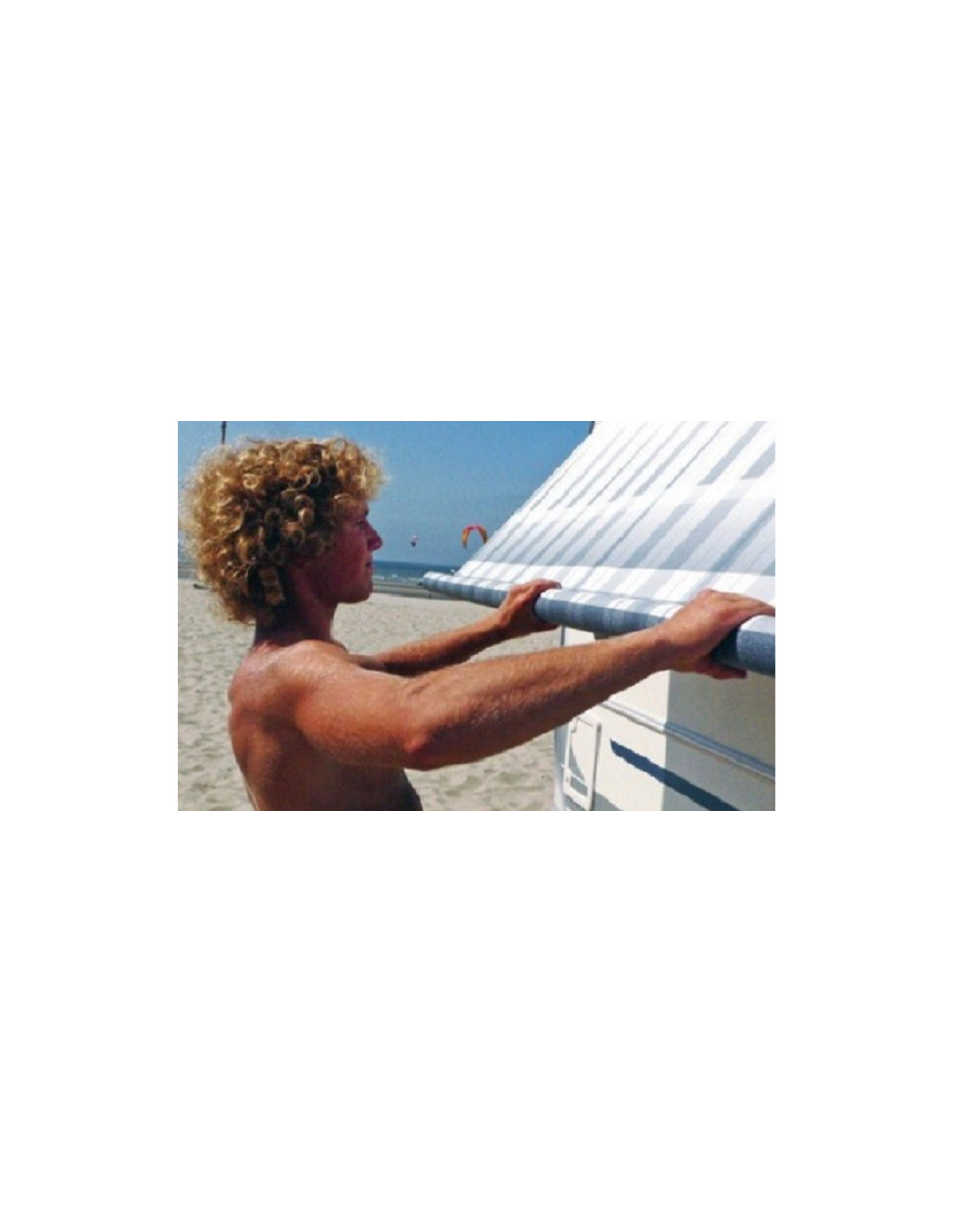 It slides down the caravan rail.