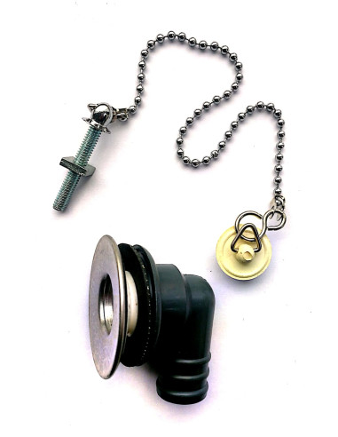 Elbow drain with plug and chain 25 mm