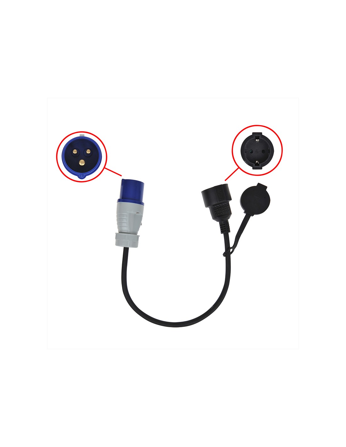 Cable adaptador de 40 cm desde el enchufe CEE a la toma Schuko caravana camper