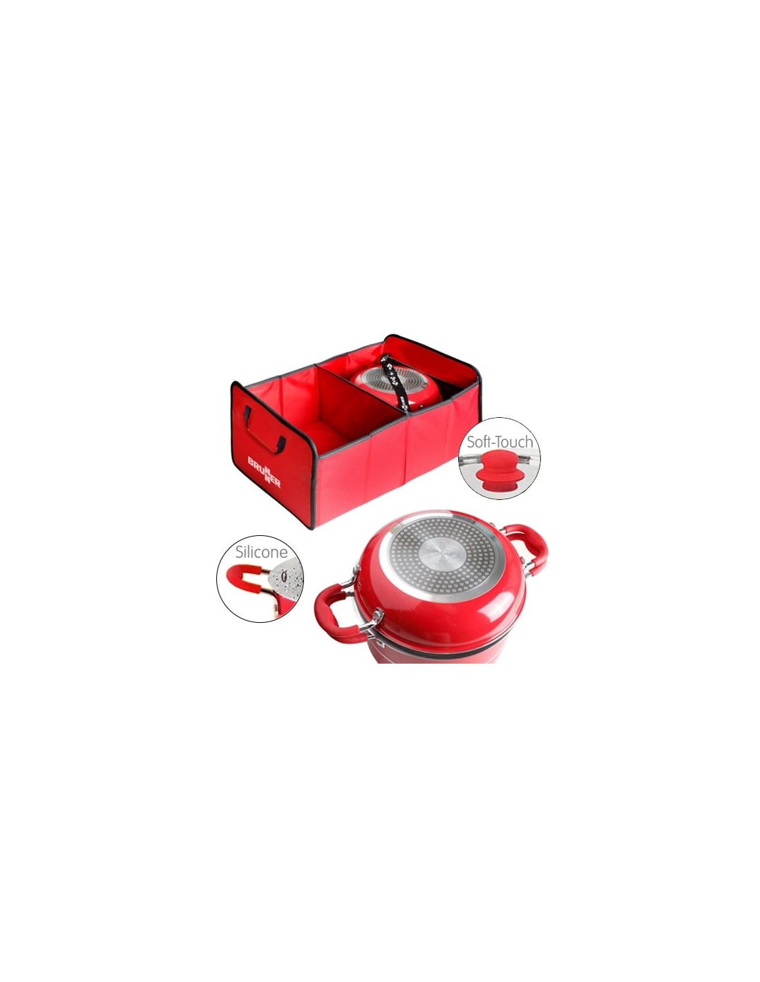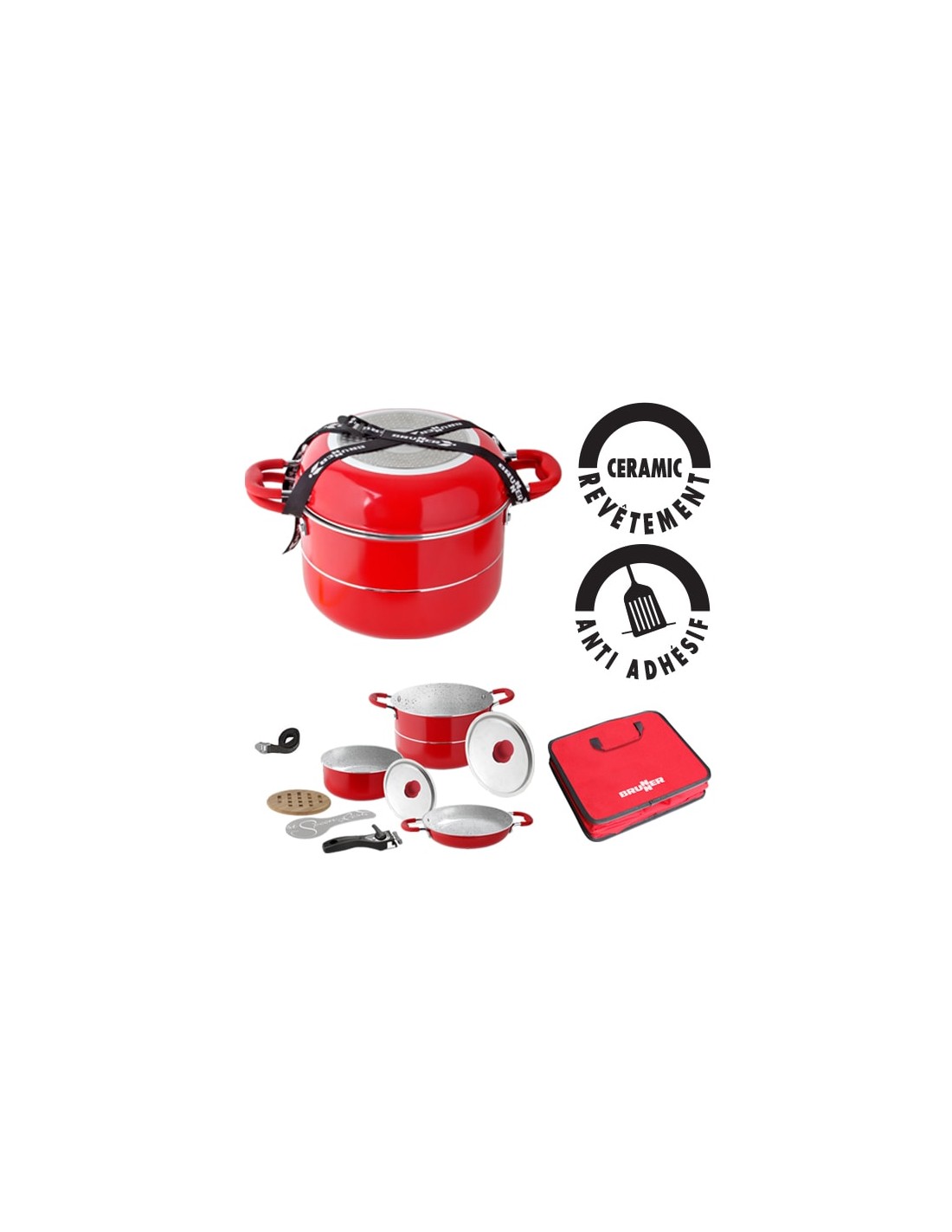 Aluminum pot with stainless steel lids and Soft Touch heat-insulating handles. With ceramic non-stick cooking surface.