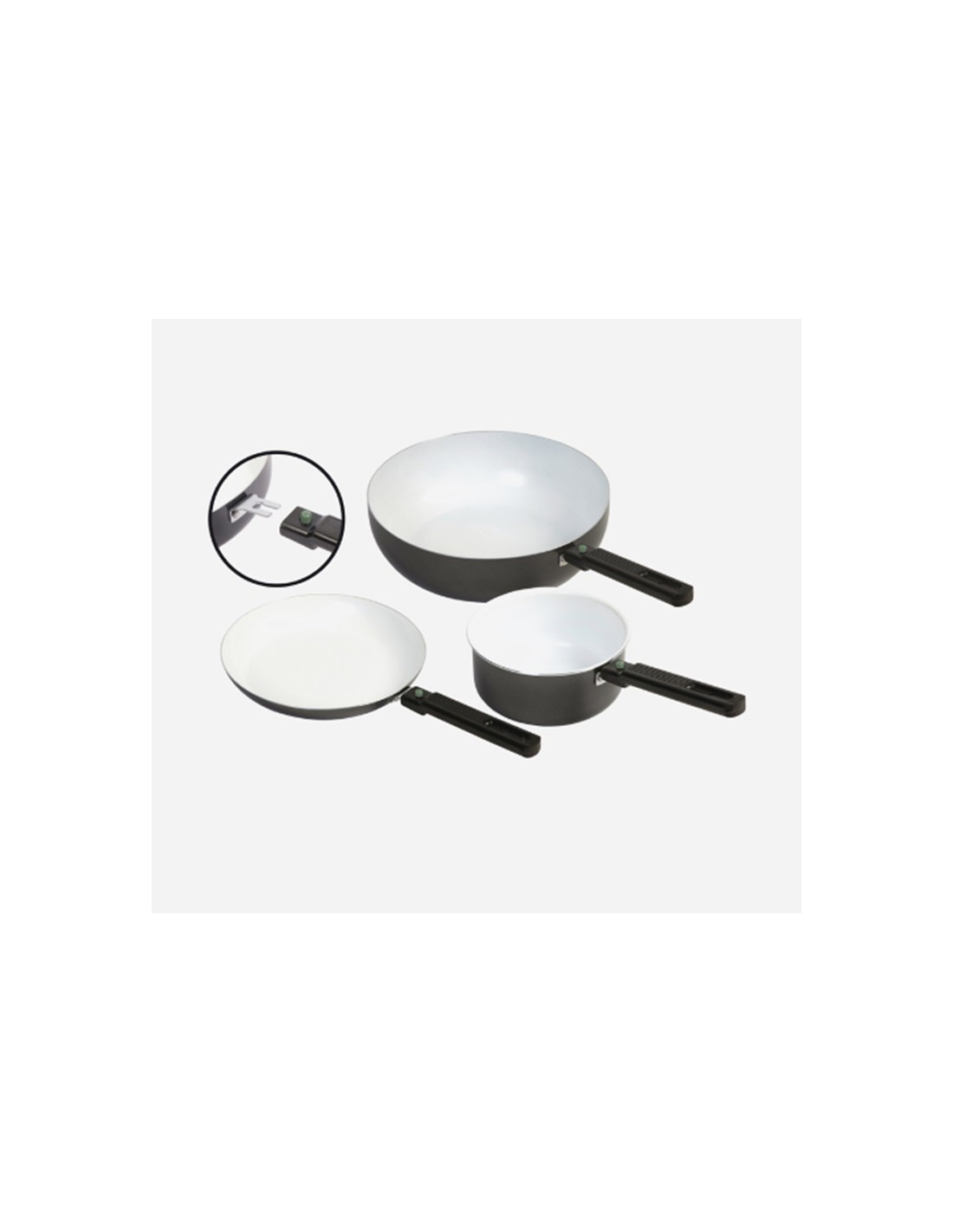 This pan has a removable handle and is therefore space-saving.