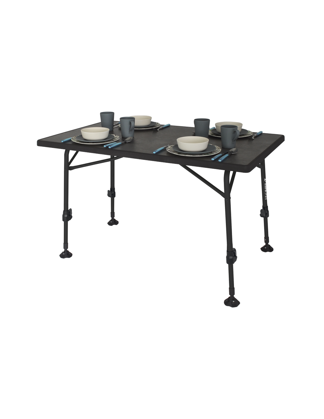 The legs are height adjustable and are mounted with large foot plates so that the table is very stable and does not easily sink into the floor.