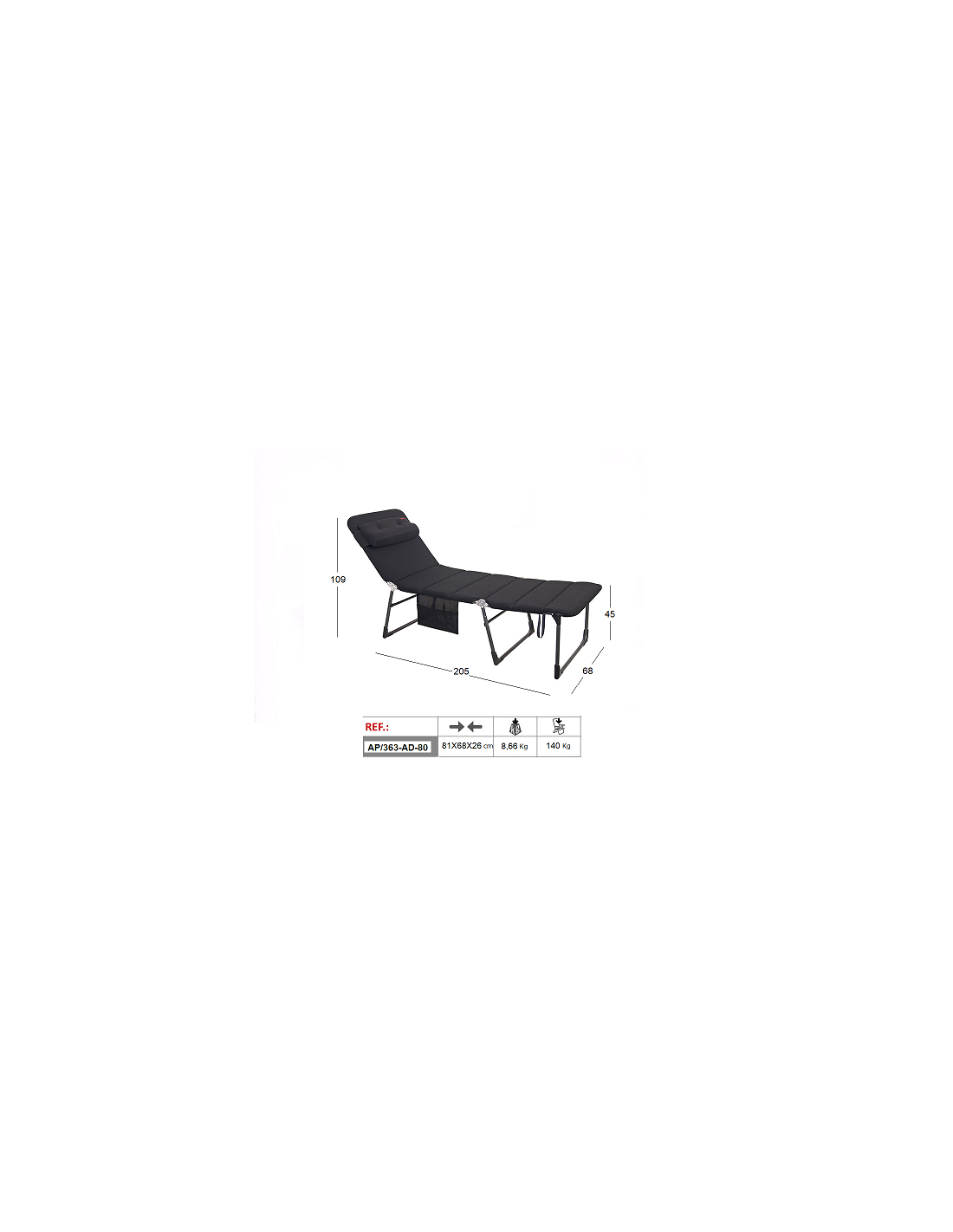 - Legs: 3 reinforced aluminum legs painted in anthracite epoxy.