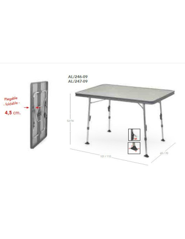 Aluminum table with dark gray top, resistant to high temperatures, humidity and scratches.