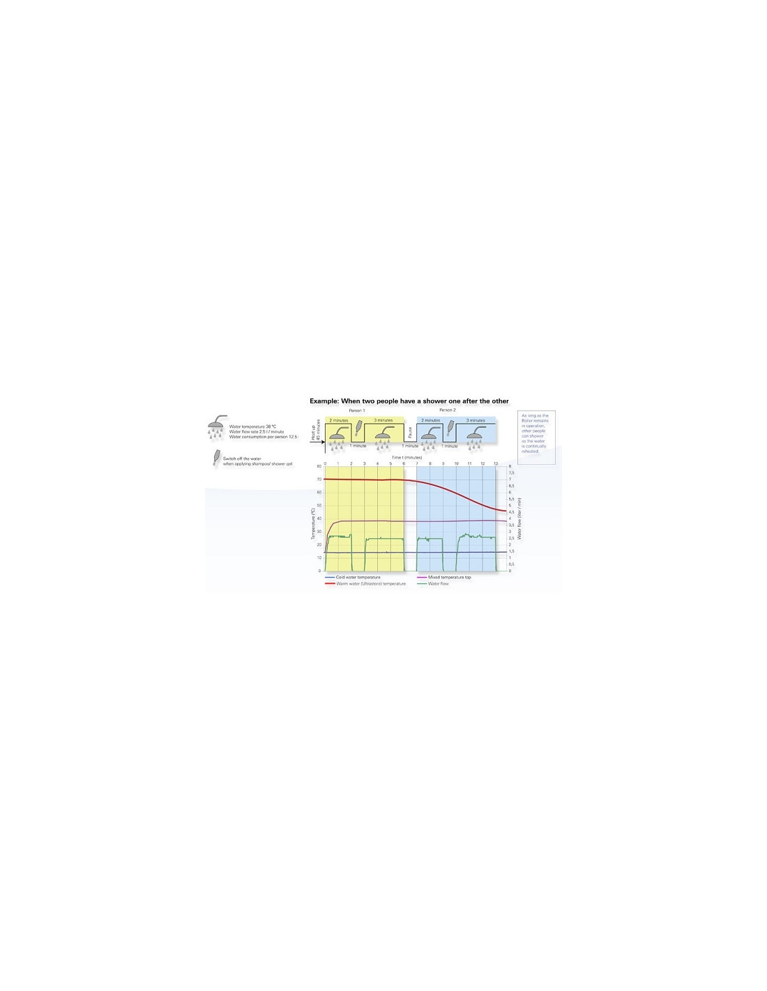 El calentador de agua de gas, proporciona agua caliente en cuestión de 31 minitos pasando de 15 a 70 ° C a través de su grifo o ducha.