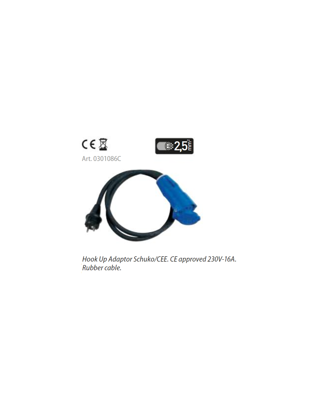 Schuko/Cetac adapter of 1.50 cm for exterior with a thickness of 2.5 mm²