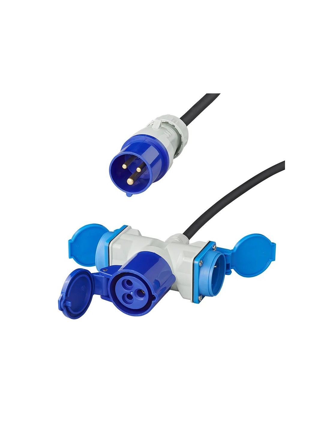 Adapter cable 150cm 3x1.5mm² from CEE plug to 2xSchuko + 1xCEE ProPlus connector