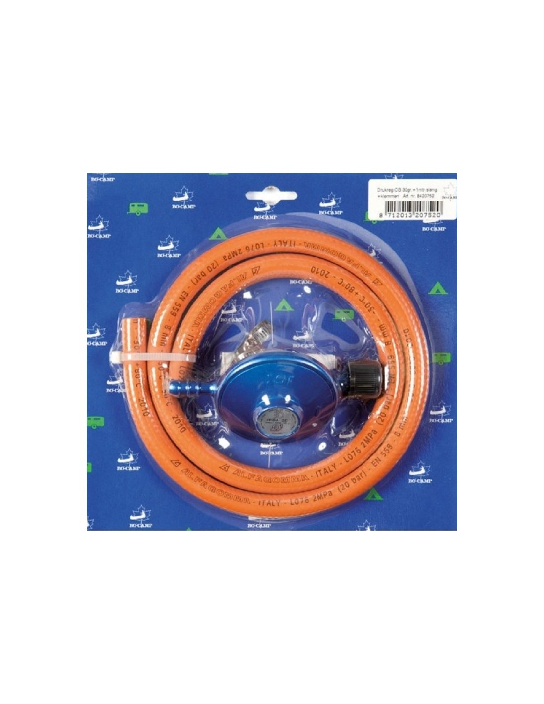 Set consisting of pressure regulator, gas hose and 2 metal clamps