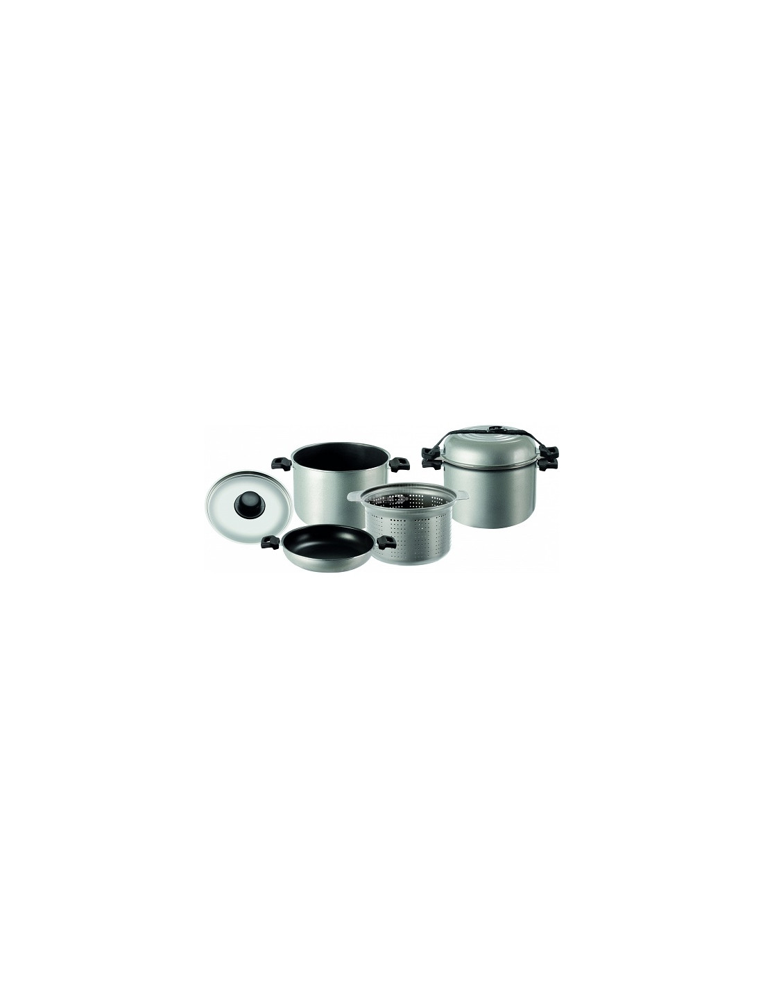 Consta de 4 piezas con tapas inoxidables y fondo antiadherente.