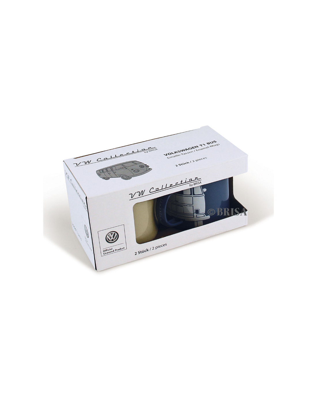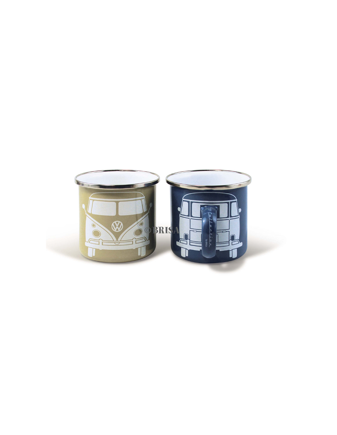 Pack of VW T1 blue and cream enameled metal mugs 500ml