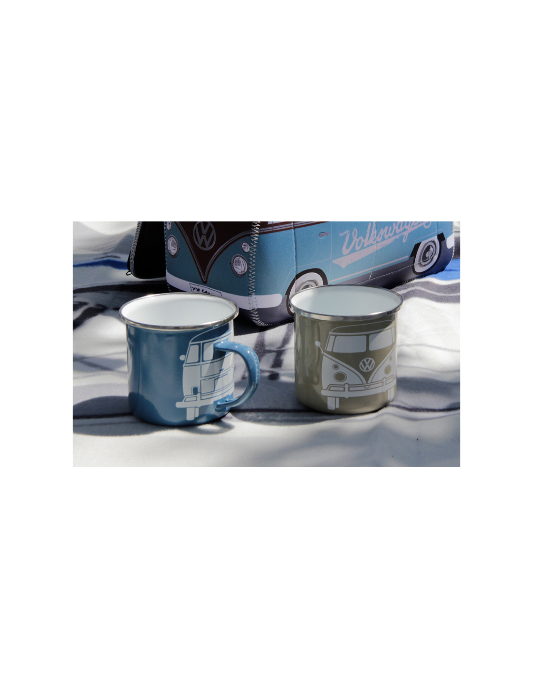 Tazas VW T1 azul y crema de metal esmaltado 500ml
