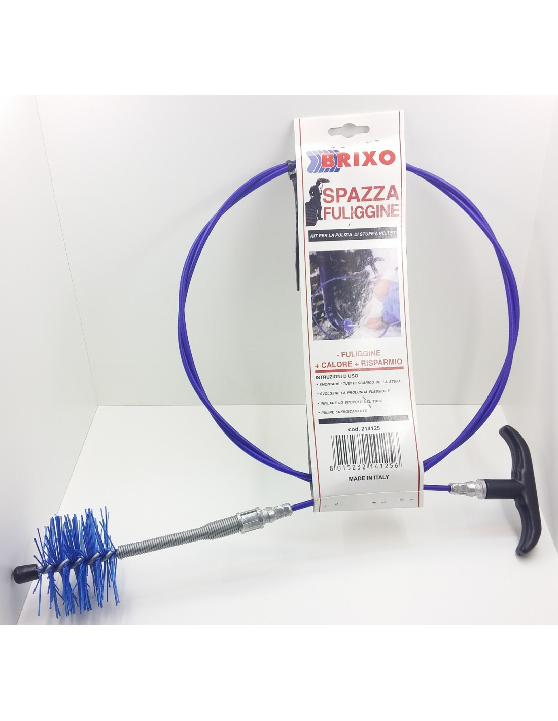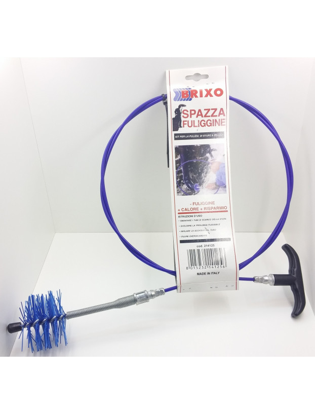 Cleaning kit for 80mm flue pipes for pellet stoves and pellet boilers. Extra-strong nylon brush (compared to other brands on the market) with a very flexible spring extension, especially for the elbows of pellet stoves. The best for cleaning pellet stove pipe.