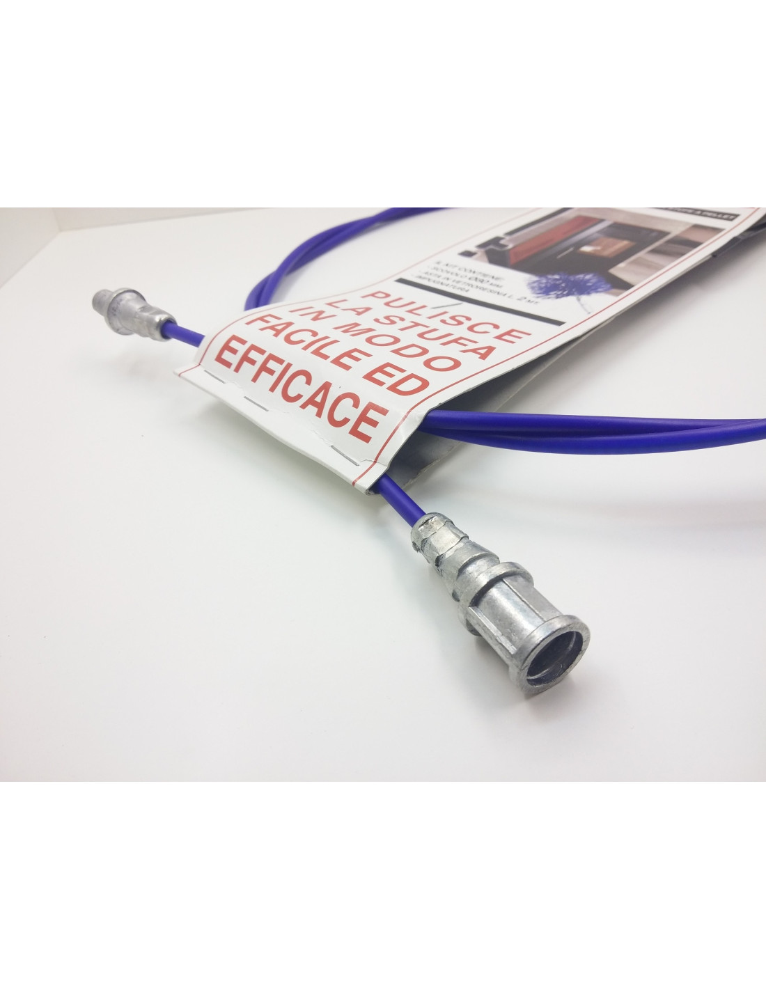 - 2m plastic-coated steel cable (one male threaded end and one female threaded end). Several steel cables can be linked, so that by buying two tube cleaning kits, they can be joined to form 4m.