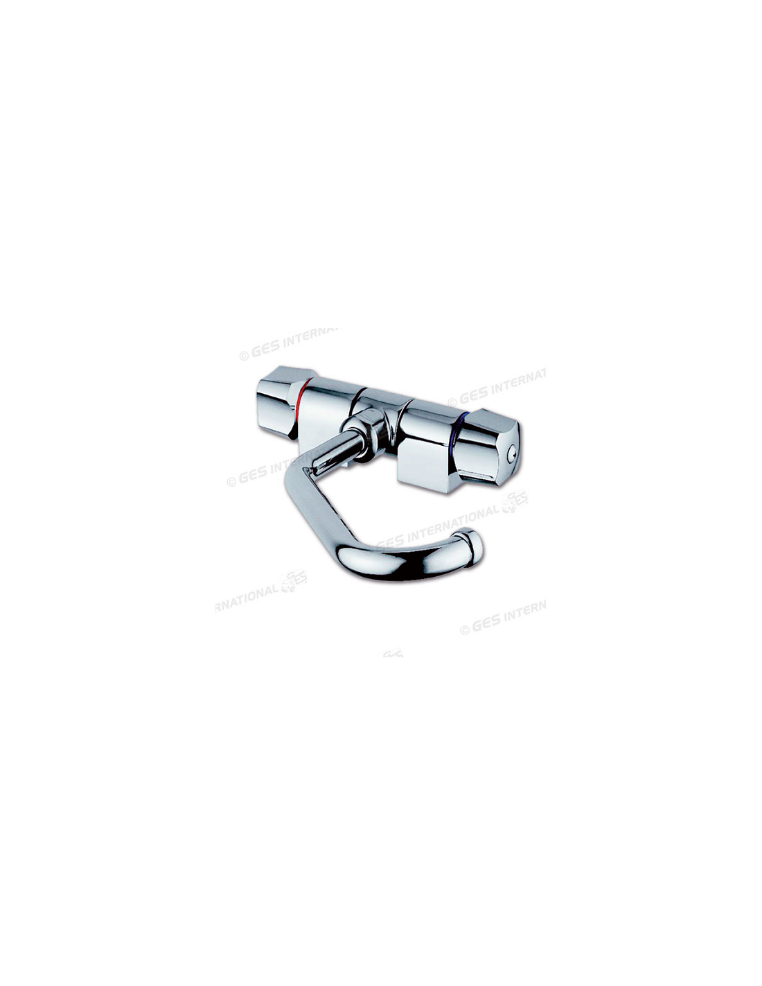 Luxe mixer tap with folding spout for hot and cold water.