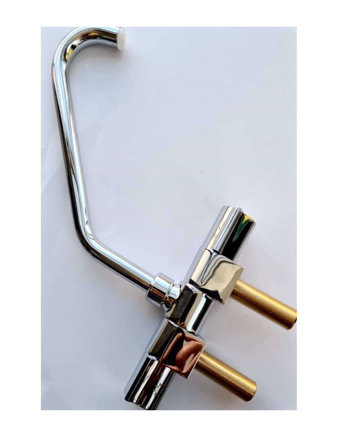 Luxury brass mixer with folding spout and independent hot and cold water connections.