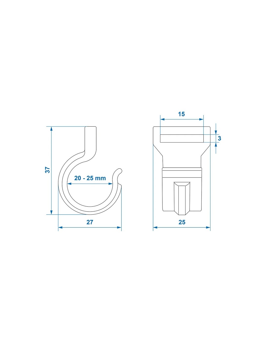 Clamp for pipes with an internal diameter of 20 to 25 mm.