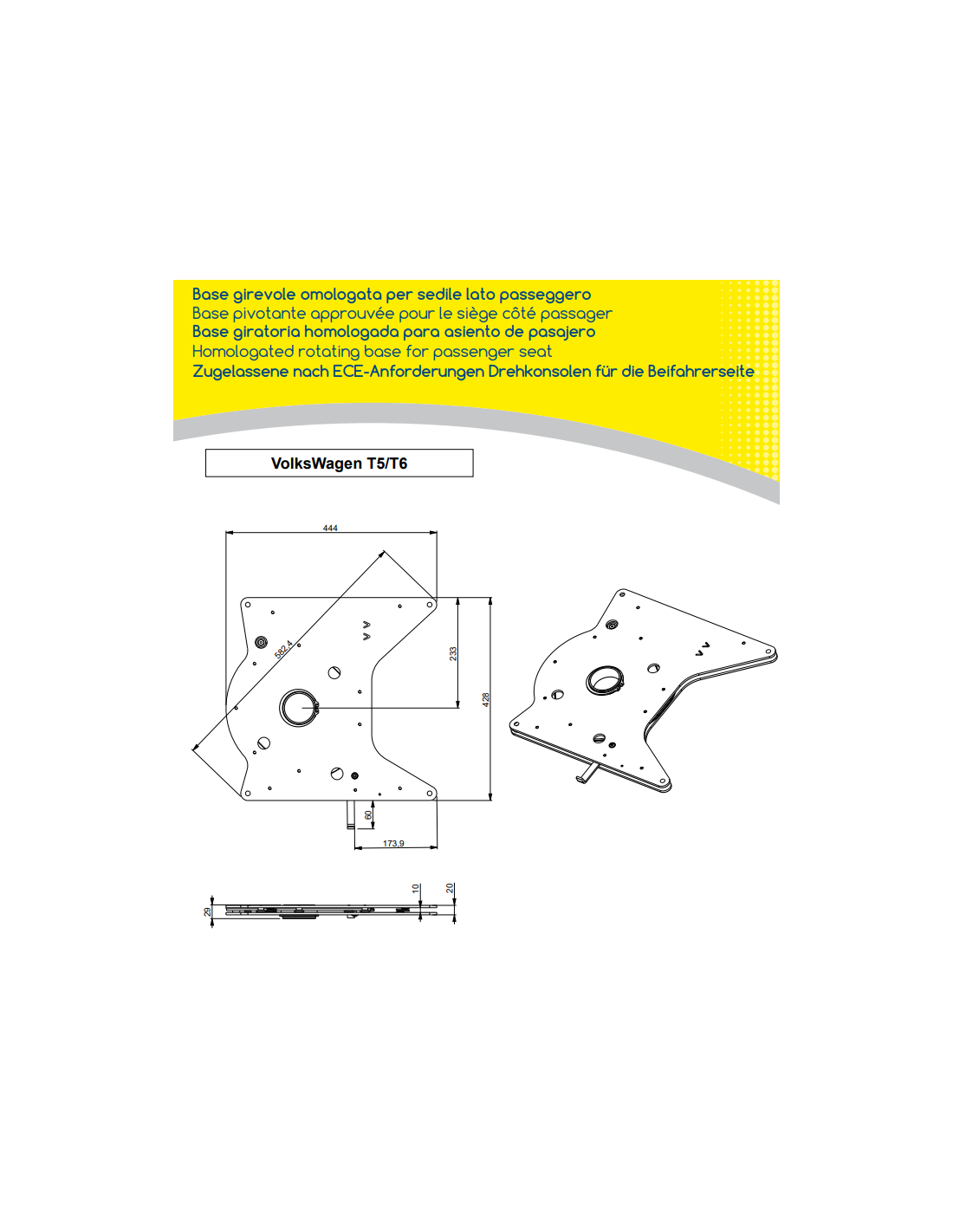 Swivel base tested and approved according to ECE requirements, with lever release mechanism.