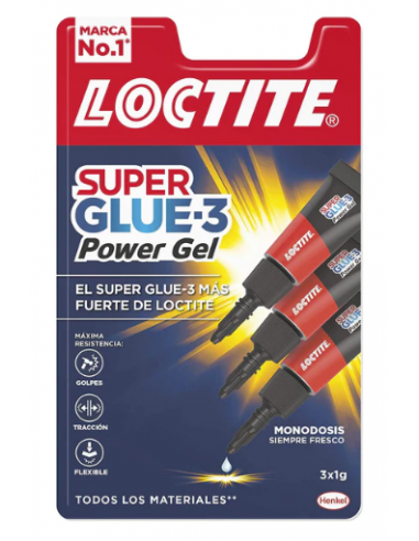 Loctite Super Glue-3 Power Gel, gel adhesivo flexible y resistente, pegamento instantáneo para superficies verticales, pegamento transparente extrafuerte.