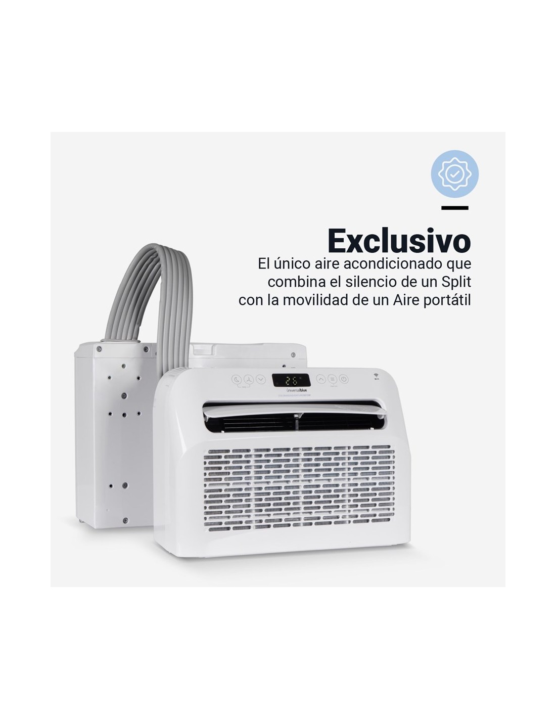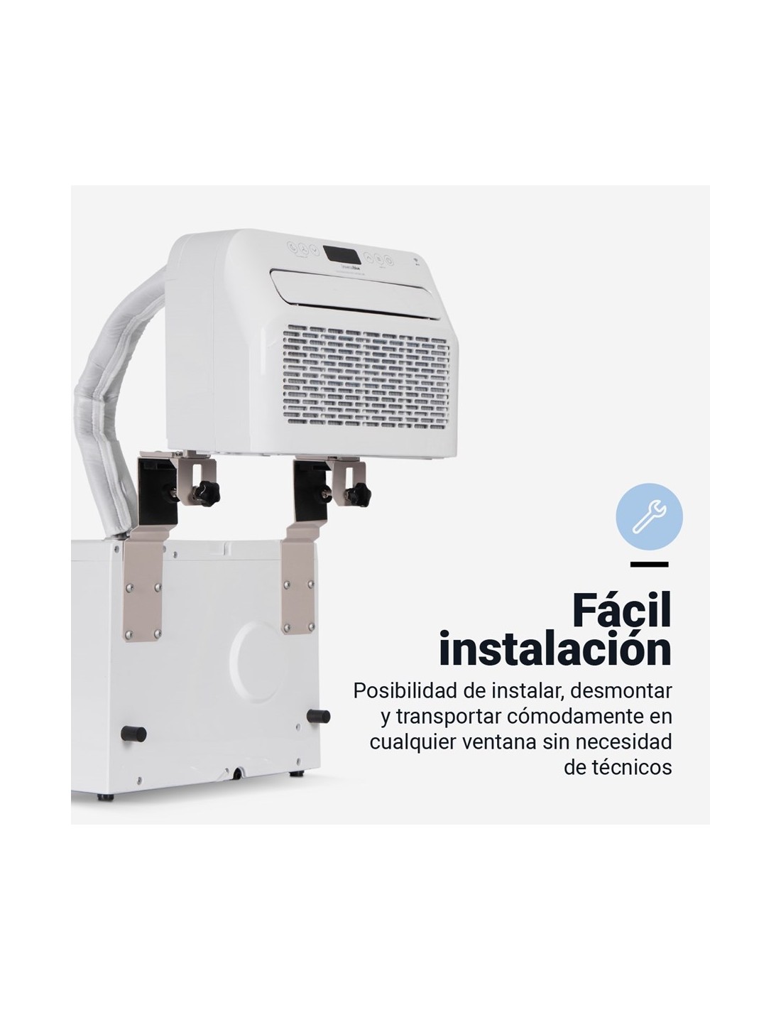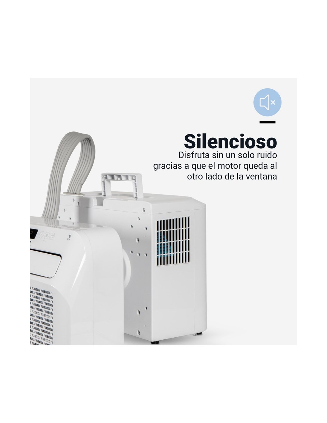 Aire acondicionado de transporte fácil que puede instalarse en la ventana quedando el motor fuera, haciendo que sea un aire acondicionado muy silencioso y cómodo (en modo silencioso, tiene un nivel sonoro de 53-56db).