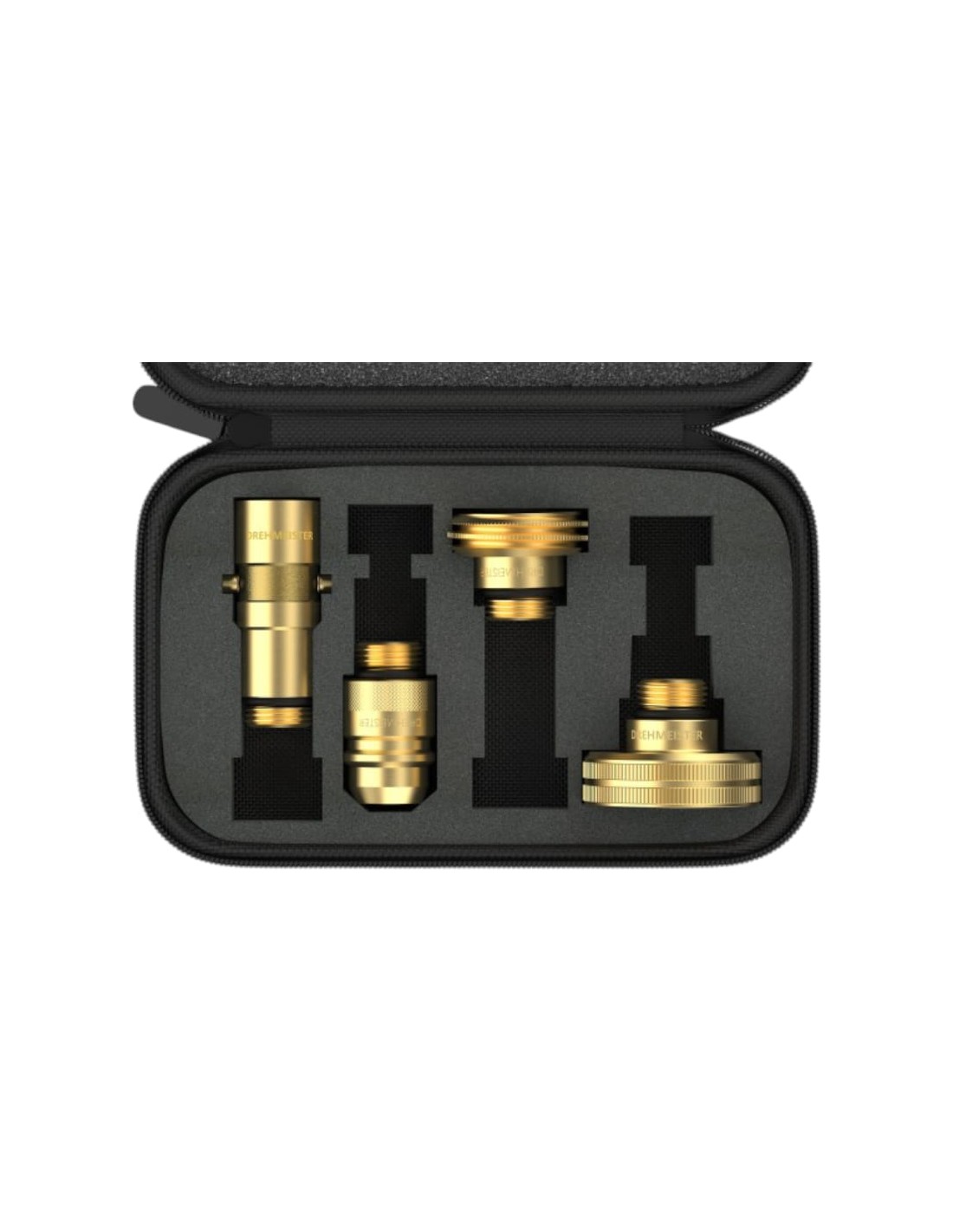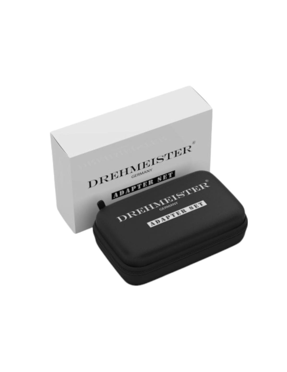 4 adaptadores de depósito DREHMEISTER DISH, BAJONETT, ACME y EURONOZZLE en un elegante estuche y diseño de 22 mm (W21,8) para todas las conexiones de depósito estándar.